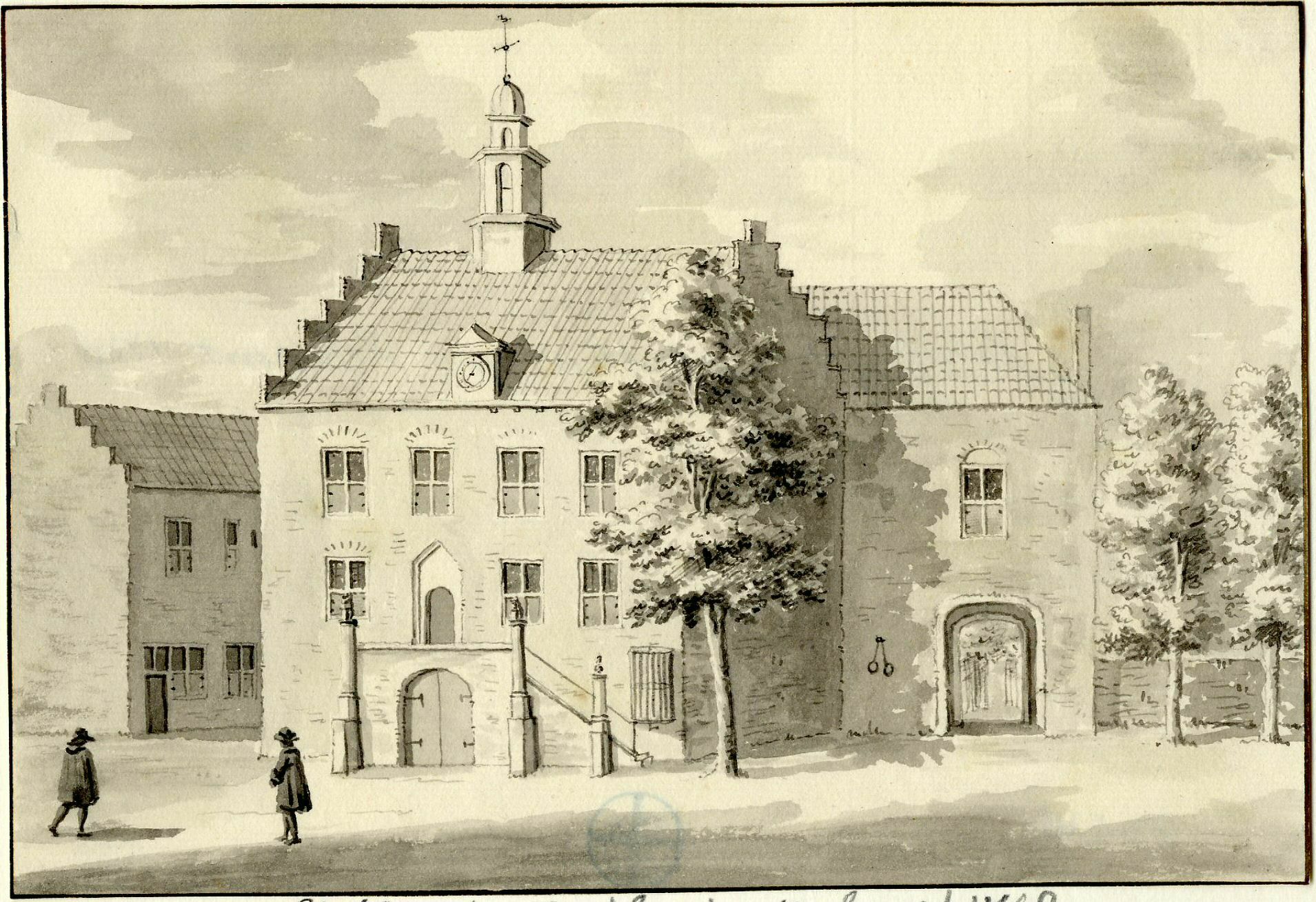 Gezicht op het raadhuis en de IJsselpoort te Montfoort vanaf de stadszijde, uit het zuidoosten. Serrurier, L.P. / 200230 / collectie Het Utrechts Archief - 1728 Publiek Domein 1.0