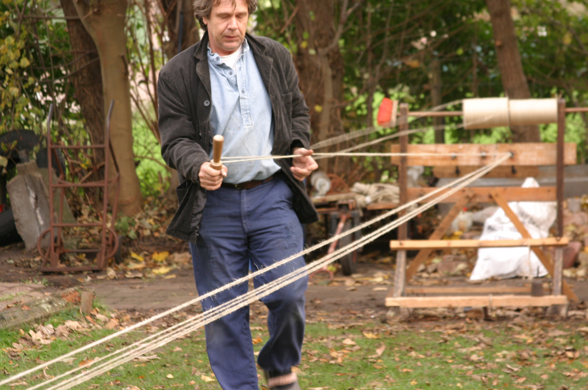 Uitscheren van de garens op de lijnbaan door de touwslager Kerkvorst - 2008 CC BY-SA 3.0