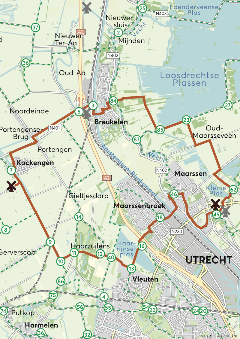 Deze fietsroute, ontwikkeld door het initiatief Zij is Molenaar, leidt je langs Kockengen, Breukelen, Maarssen, Maarssenbroek en Vleuten. Onderweg kom je langs een aantal prachtige Utrechtse molens waar vrouwelijke molenaars de dienst uitmaken. Aangekomen bij ‘hun’ molens, kun je met je telefoon een QR code scannen en naar hun verhalen luisteren. Een perfecte fietspauze. Deze eerste route is 31 kilometer lang.