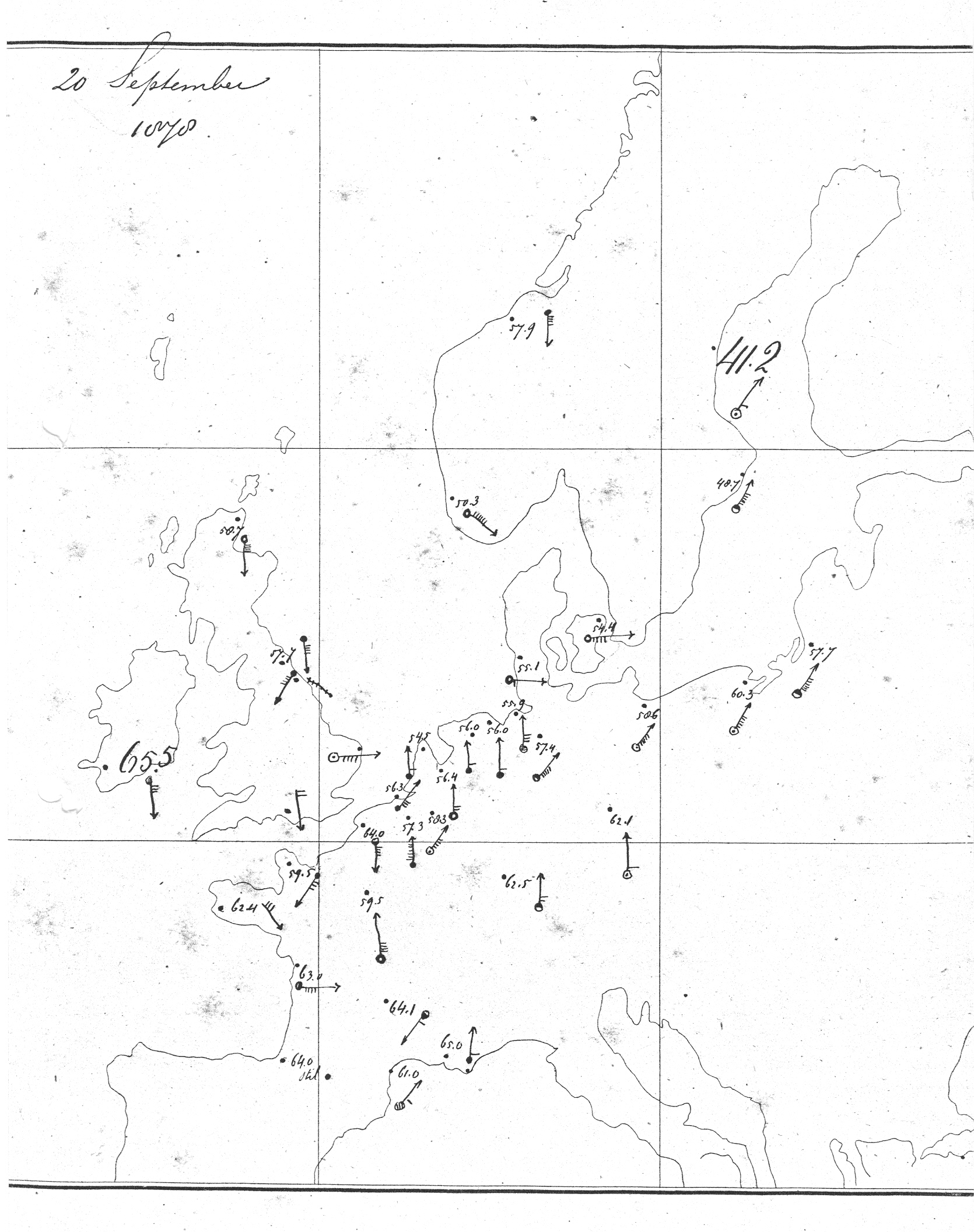 Een van de eerste weerkaarten gemaakt door Buys Ballot KNMI - 1878 CC BY-SA 2.5