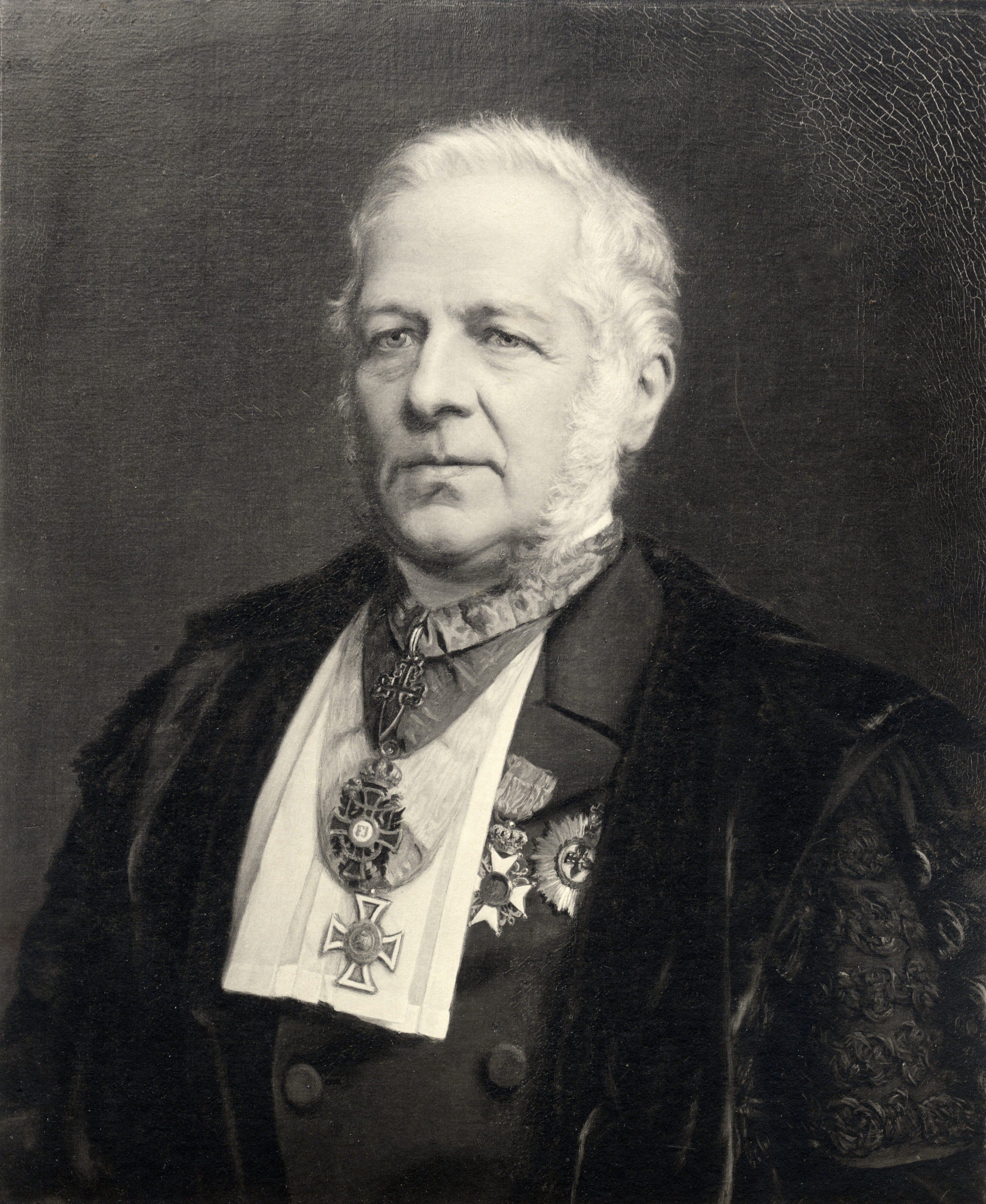 Portret van professor C.H.D. Buys Ballot, geboren 10 oktober 1817, hoogleraar in de wis- en natuurkunde aan de Utrechtse hogeschool (1856-1887), directeur van het Provinciaal Utrechts Genootschap (1856-1887), overleden 3 februari 1890. Borstbeeld links, in toga. Fotoreproductie van Alex Bratsch, begin 20ste eeuw, van een geschilderd portret in de Senaatskamer van het Academiegebouw te Utrecht, gemaakt ter gelegenheid van zijn afscheid als hoogleraar. Bratsch, A., fotograaf / 104271 / collectie Het Utrechts Archief - 1886-1887 Publiek Domein 1.0