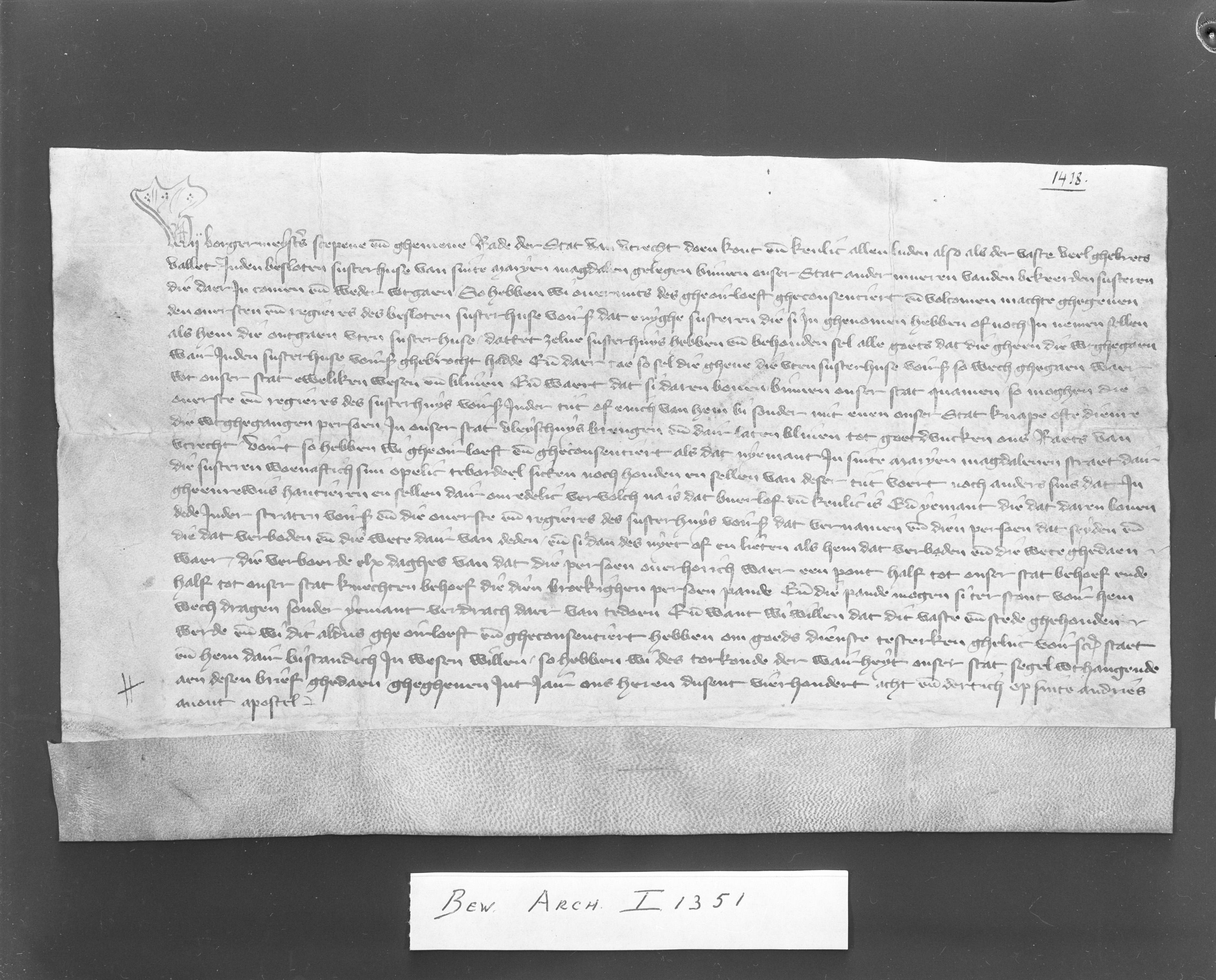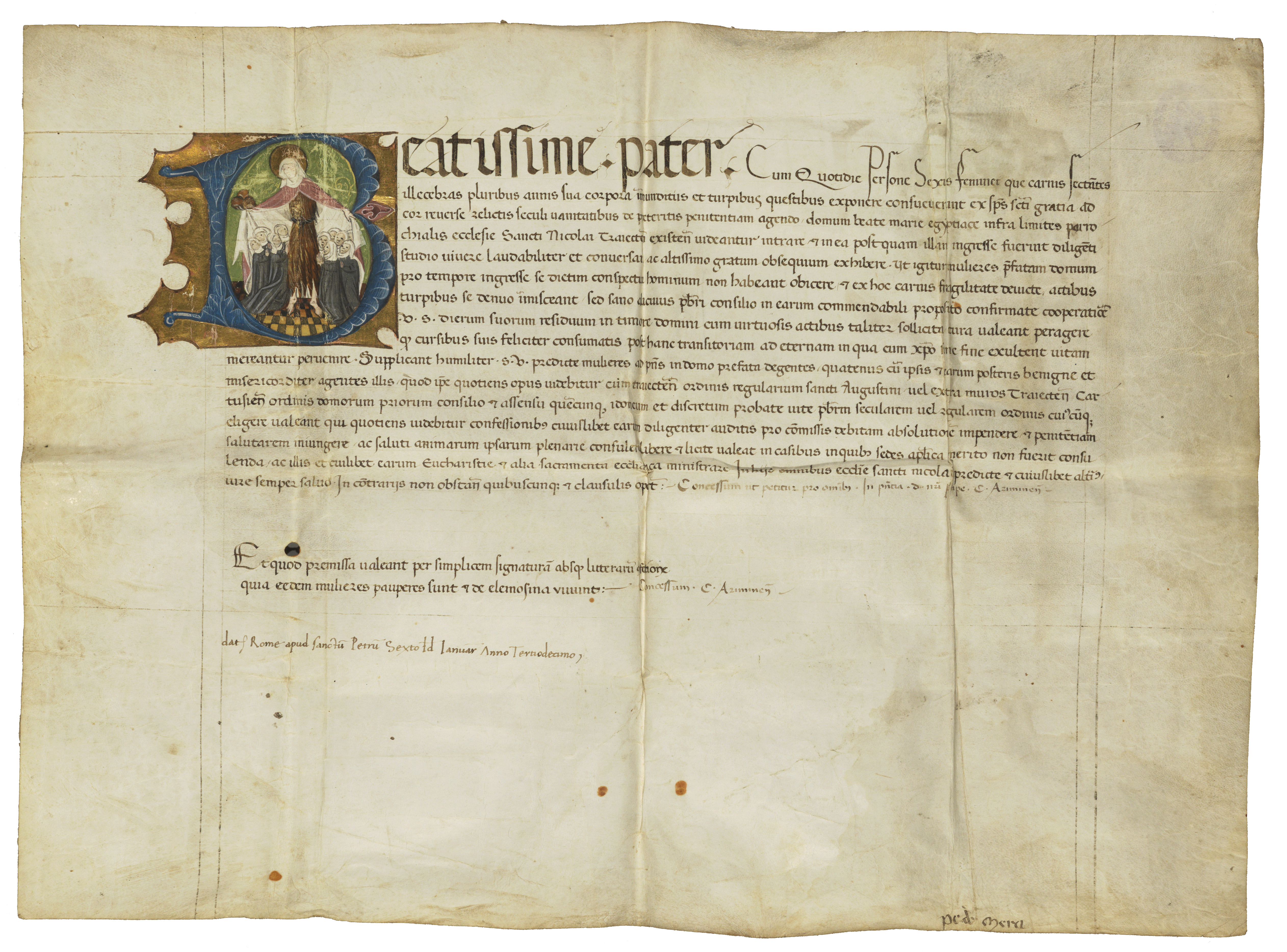 Request van de zusters van St. Maria Egyptiaca aan den paus, houdende verzoek om het recht, zich een eigen biechtvader uit de Regulieren- of Karthuizer-kloosters te Utrecht te kiezen, met toestemmende beschikking, 1443 jan. 8. Het Utrechts Archief, Archieven, bewaard bij het stadsbestuur van Utrecht, Toegang 708, inv.nr. 1363 - 1443