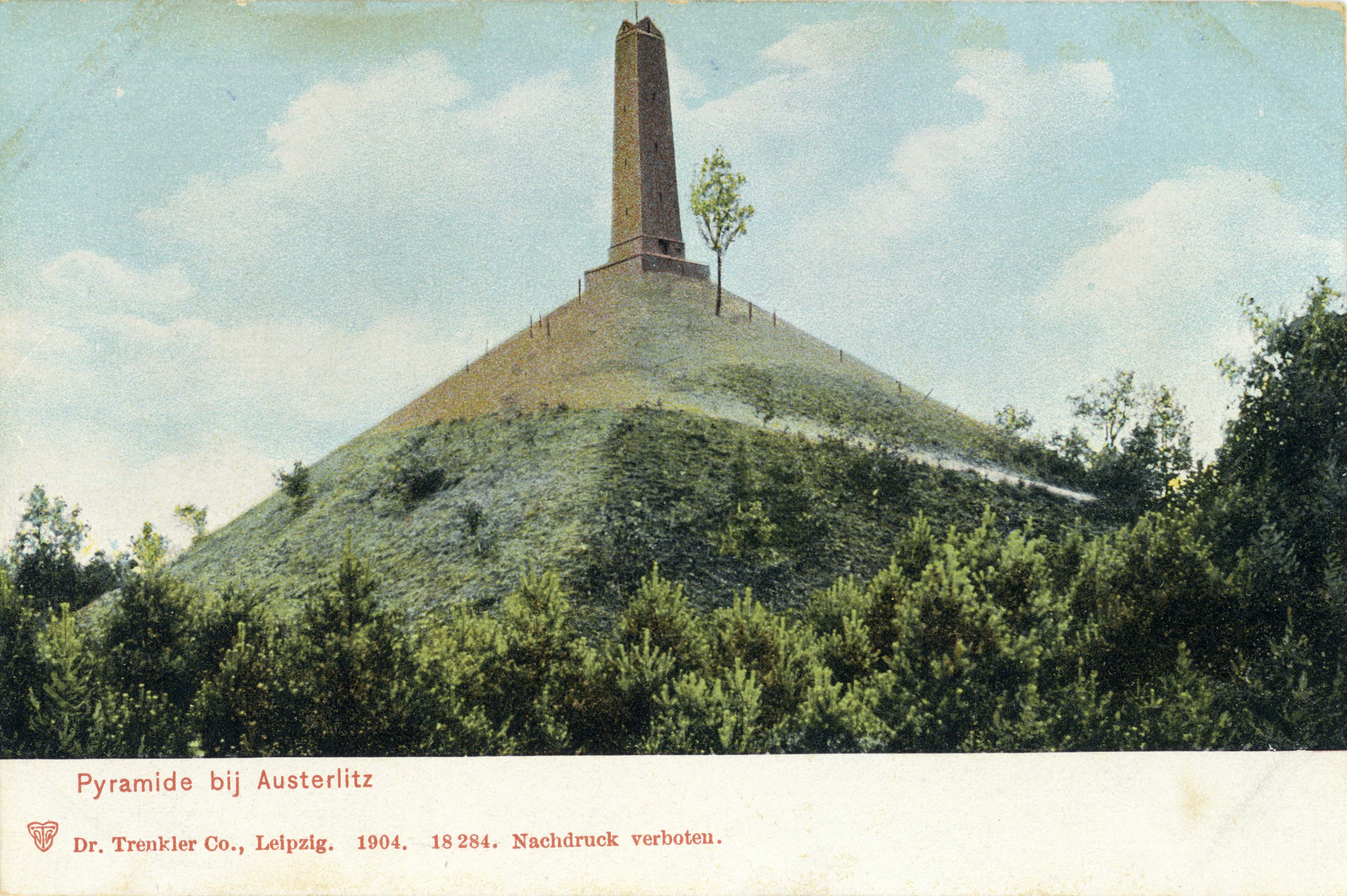 Gezicht op de pyramide van Austerlitz te Austerlitz uit het zuidwesten. Trenkler Co., Dr., uitgever / 7160 / collectie Het Utrechts Archief - 1904 CC0