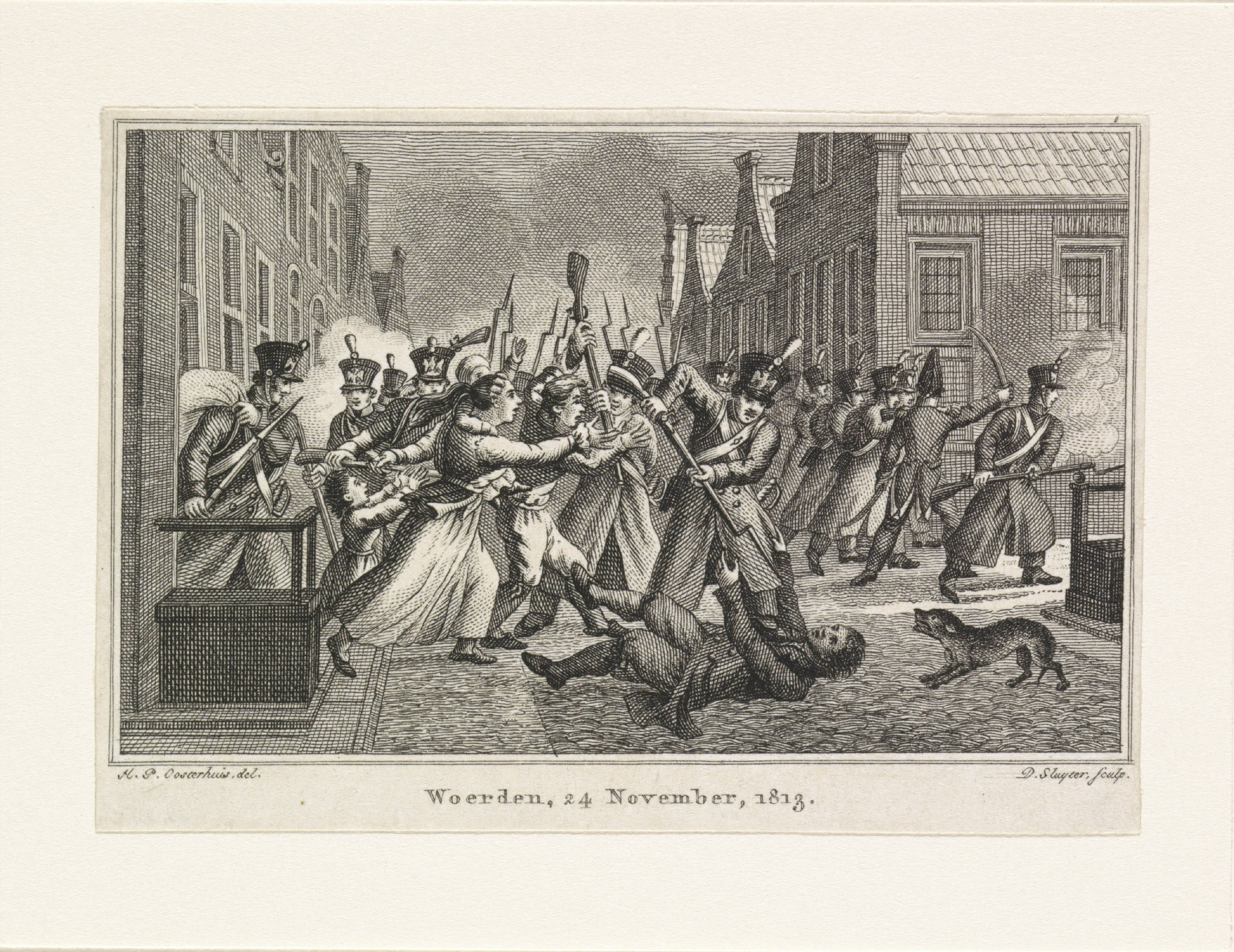 Plundering van Woerden door de Fransen, 24 november 1813. Dirk Sluyter - 1813 CC0 Publiek Domein