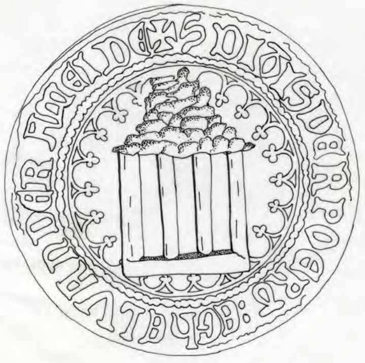Reconstructie van het Stadszegel van Ameide uit 1527. De tekst van het randschrift luidt: Dit is der Poert Seghel van der Ameide. 1527