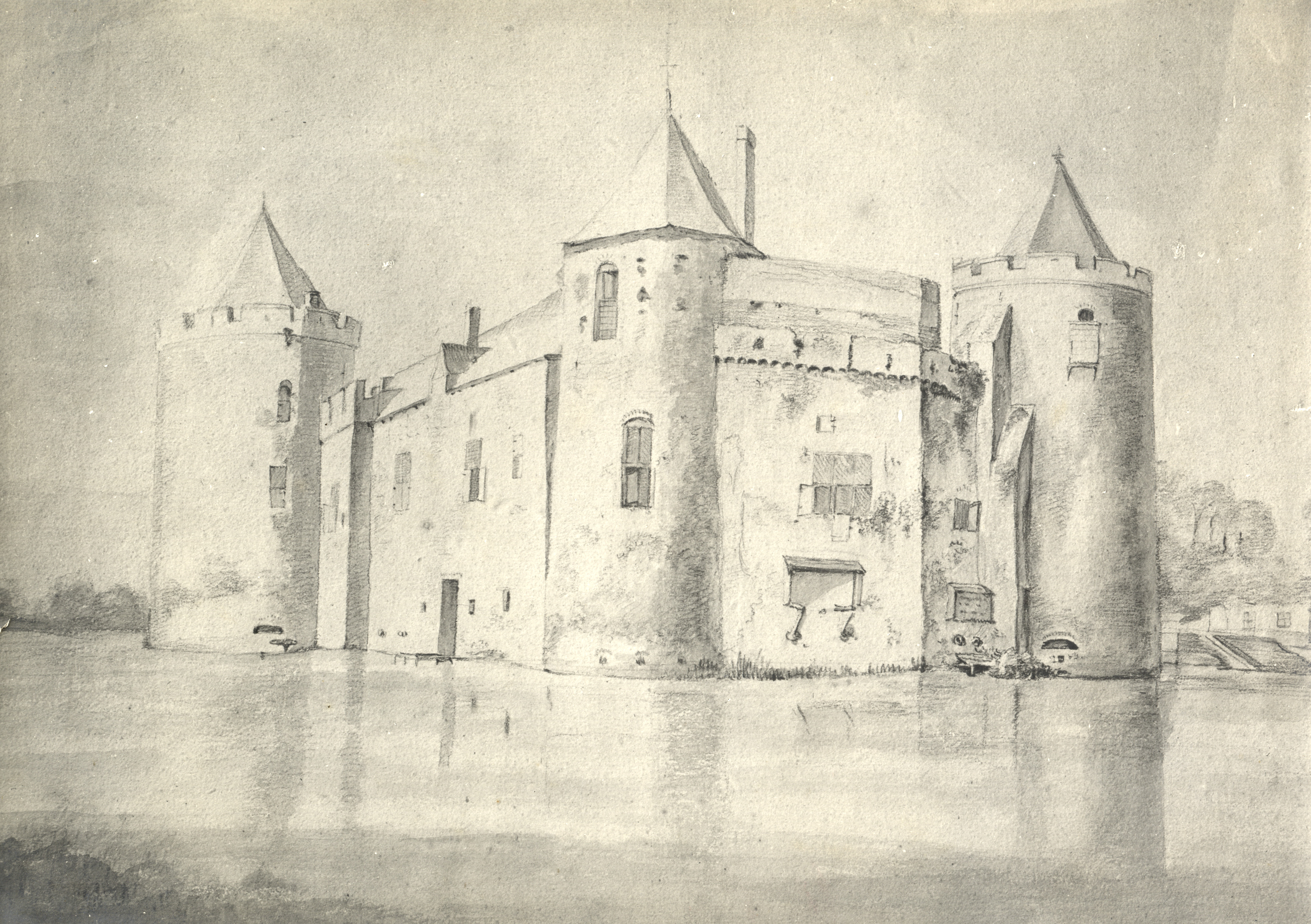Gezicht op de ruine van het slot Abcoude bij Abcoude uit het noordwesten Schijnvoet, J., graficus / 201047 / collectie Het Utrechts Archief - 1705 Publiek Domein 1.0
