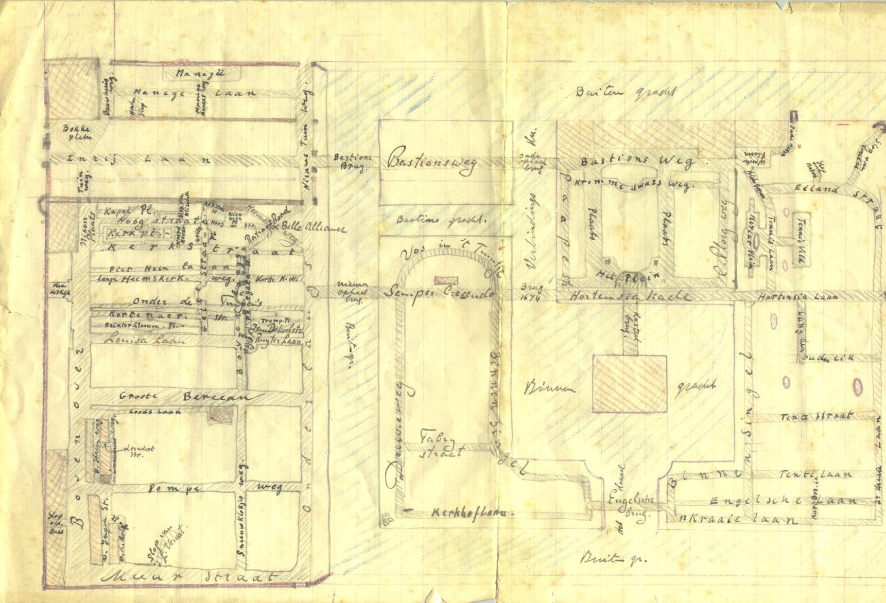 Kaartje van de plattegrond van de tuin getekend door G. Bentinck, ca. 1910. 1910 Publiek Domein 1.0