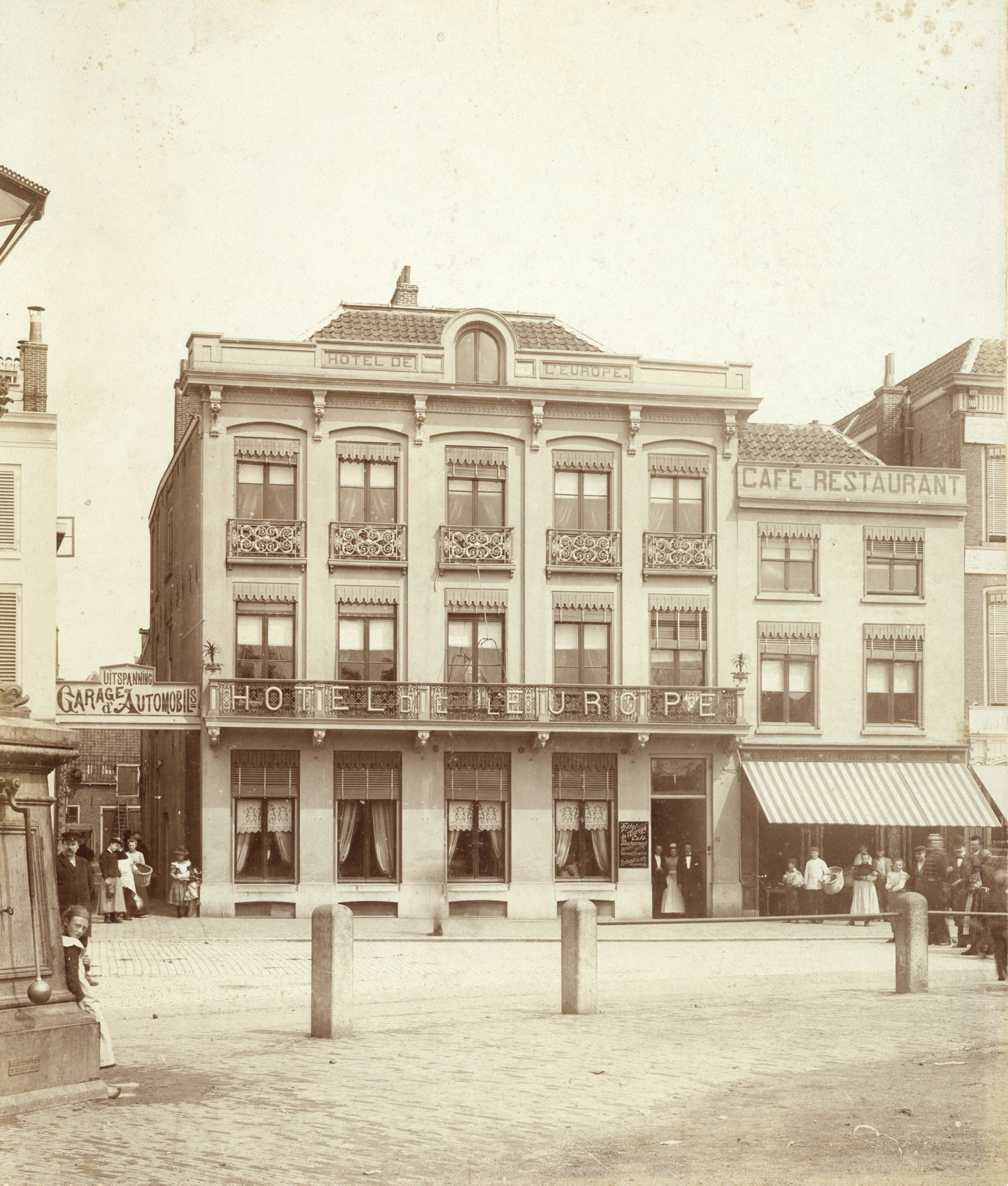 Gezicht op de voorgevel van Hotel-café-restaurant de l'Europe (Vredenburg 17) te Utrecht Onbekend / 404736 / collectie Het Utrechts Archief - 1890-1900 CC0
