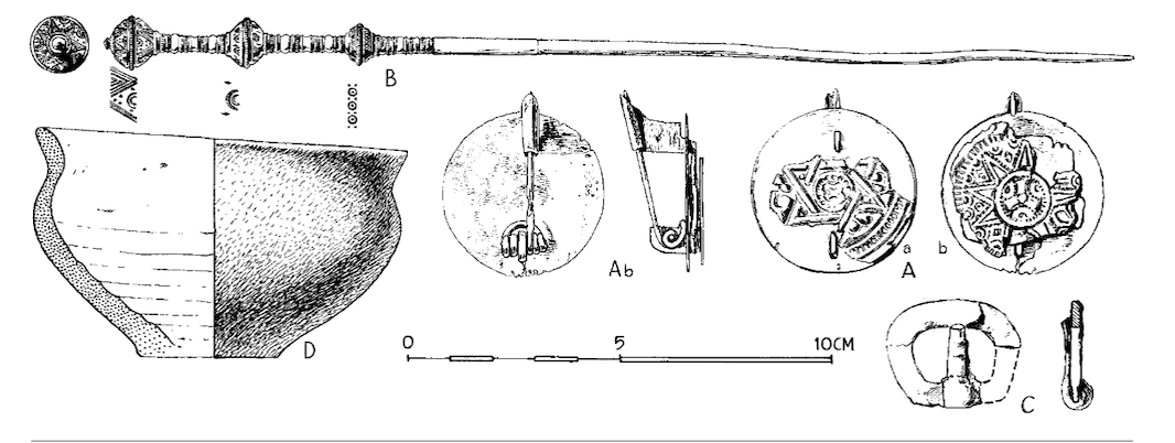 Er is gesuggereerd dat al deze hexagonvondsten in Noordwest-Europa oorspronkelijk gemaakt zijn in hetzelfde atelier, omdat ze erg op elkaar lijken. De zilveren schalen kunnen voor gebruik bij de christelijke eredienst gemaakt zijn. Mogelijk waren er Armeense of Sarmatische handwerkslieden of krijgsgevangenen aanwezig in de werkplaats waar versieringen gemaakt werden en is het zo in de foederaticultuur geïntegreerd. Dat wordt in ieder geval aangenomen voor de zilveren schalen die later geschonken zijn aan leden van de hulptroepen die een eerbewijs verdienden. Het zou de hexagonfibula’s van graf 356 goed verklaren.
