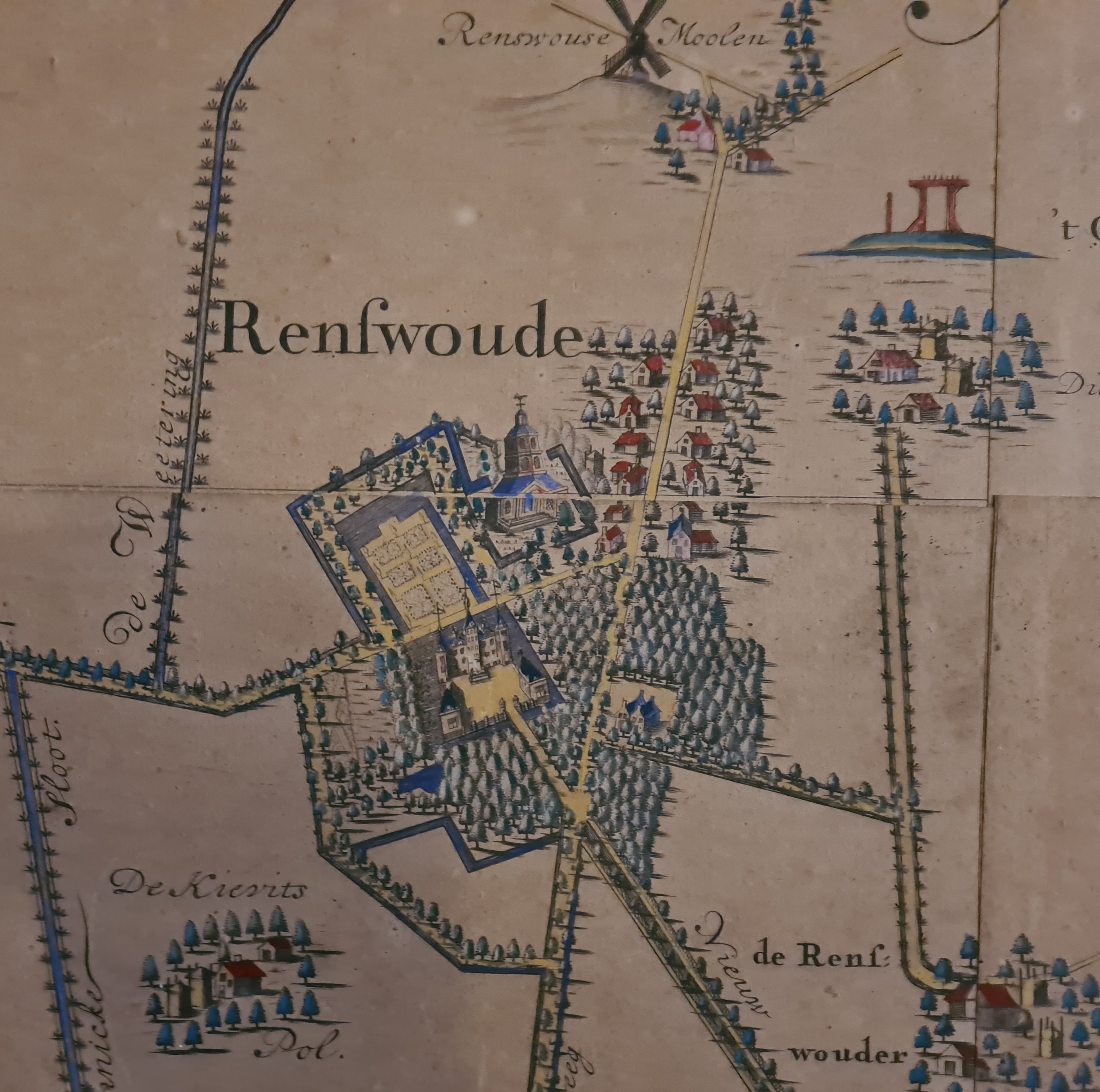 In 1654 liet Johan van Reede op de plek van de afgebroken middeleeuwseridderhofstadRenswoude een nieuw landhuis bouwen. Het ontwerp hiervoor was van de hand van Gijsbert van Vianen en Pieter van Cooten. De tuinen kregen in 1708 eenformele aanleg, waarbij onder meer het ruim700 meter lange 'grand canal' werd uitgegraven.
