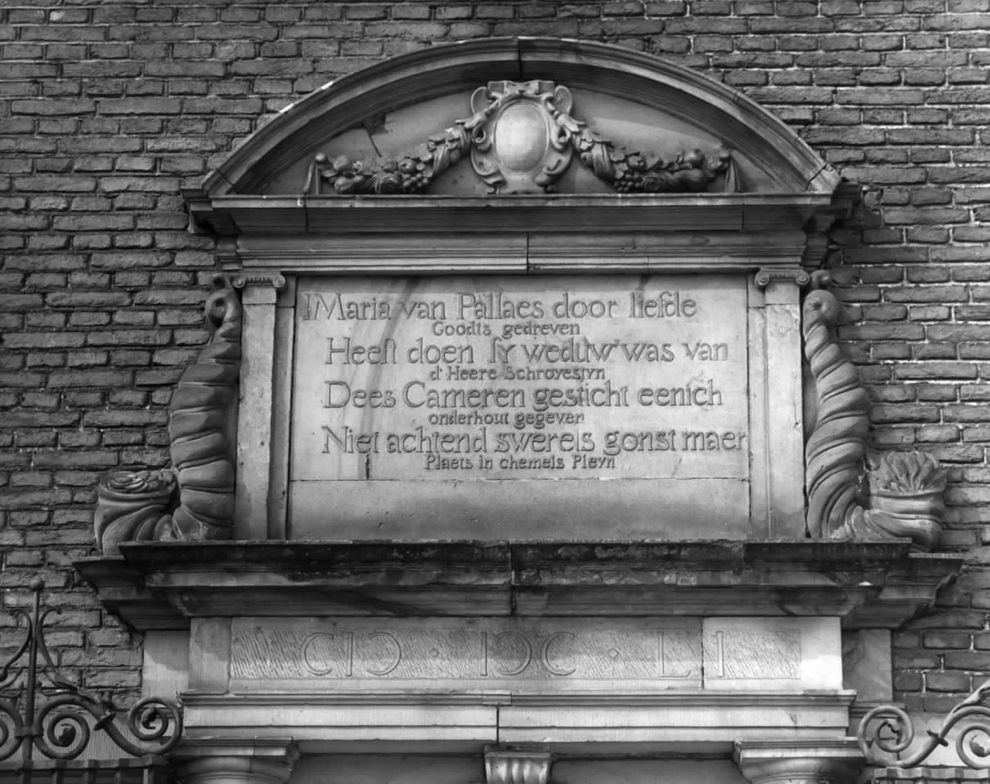 Gevelsteen boven de ingang van het refectiehuis van de Fundatie van Maria van Pallaes Fotodienst GAU / 65384 / collectie Het Utrechts Archief - 1978 CC BY 4.0