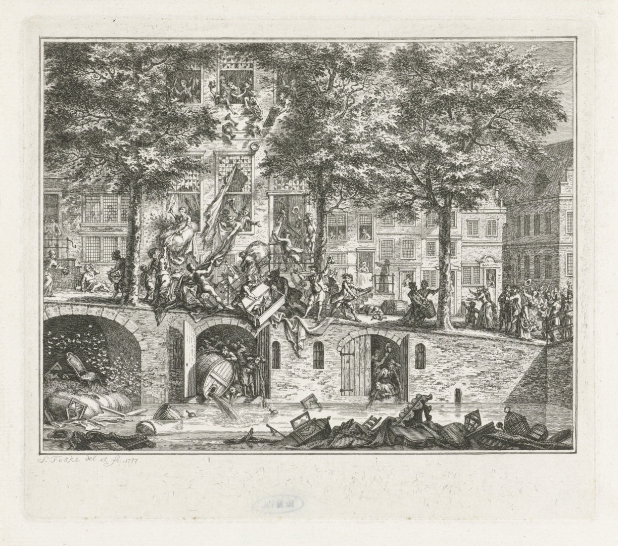 Plundering van het huis van A.M. van Arssen te Amsterdam, 1748 Simon Fokke / collectie Rijksmuseum - 1748 Publiek domein 1.0