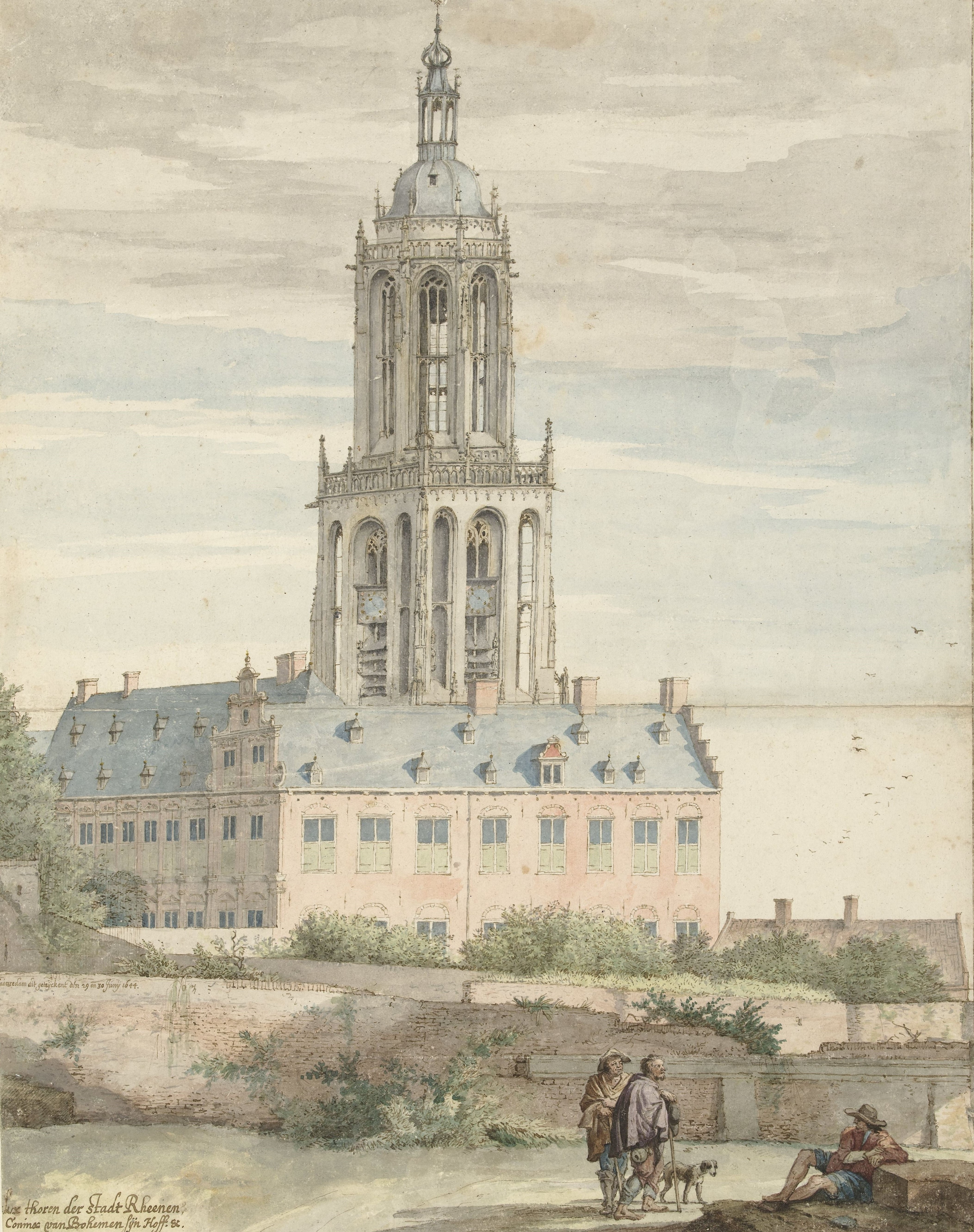Gezicht op het paleis van Frederik V van de Palts en de Sint-Cunerakerk te Rhenen thoren der stadt Rheenen / Coninx van Bohemen sijn Hoff P. J. Saenredam/ collectie Rijksmuseum - 1644 CC0