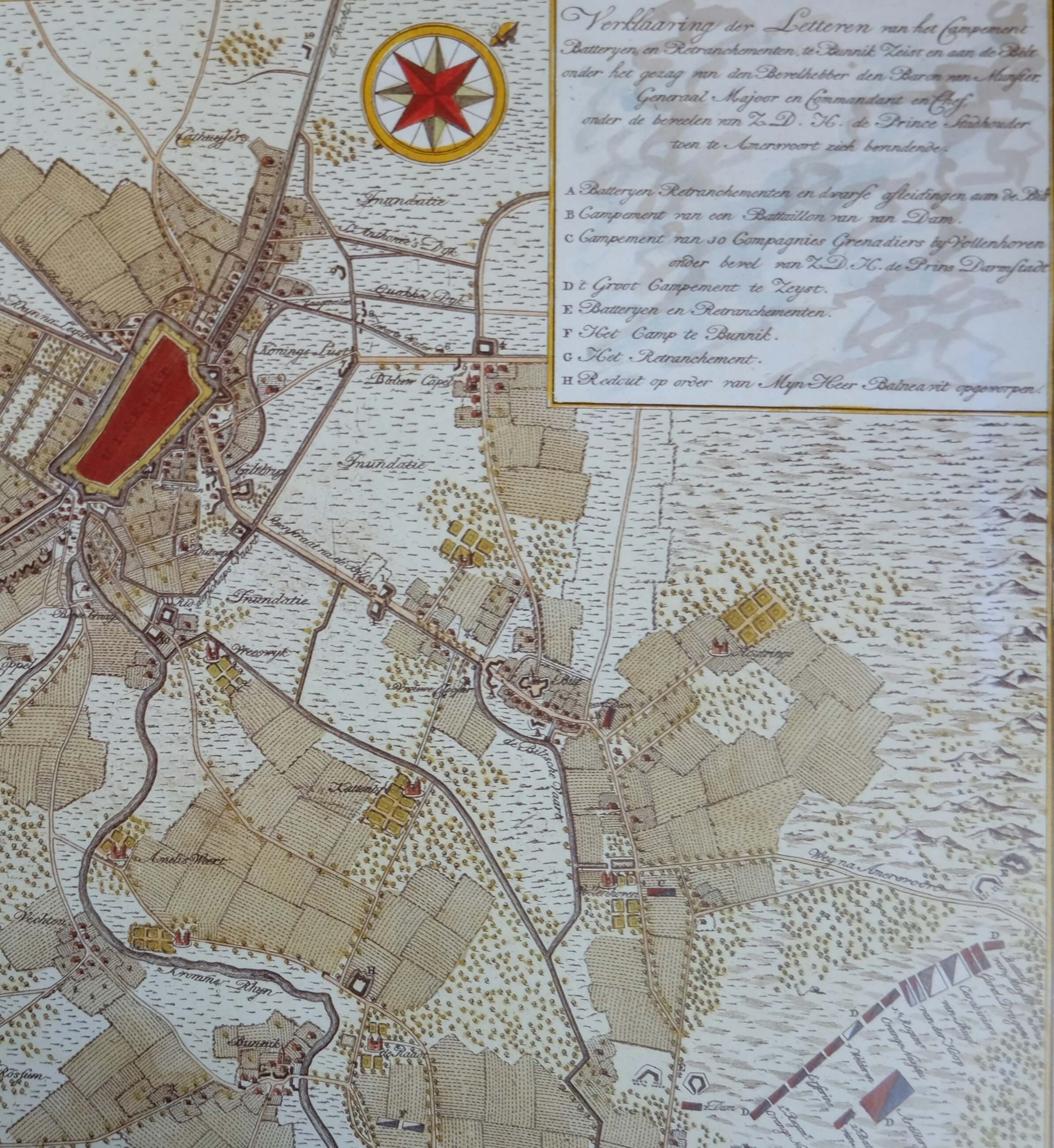 Kaart met de schansen en inundaties rondom Utrecht door de patriotten. Coenradus Hendricus Koning - 1789 Publiek Domein 1.0
