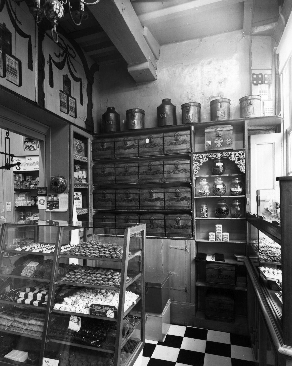 Interieur van de banketbakkerij 'Den Dubbelden Arend' van J. van Amerongen (Schoutenstraat 13) te Utrecht: winkel. Fotodienst GAU, fotograaf / 69959/ collectie Het Utrechts Archief - 1988 CC BY 4.0