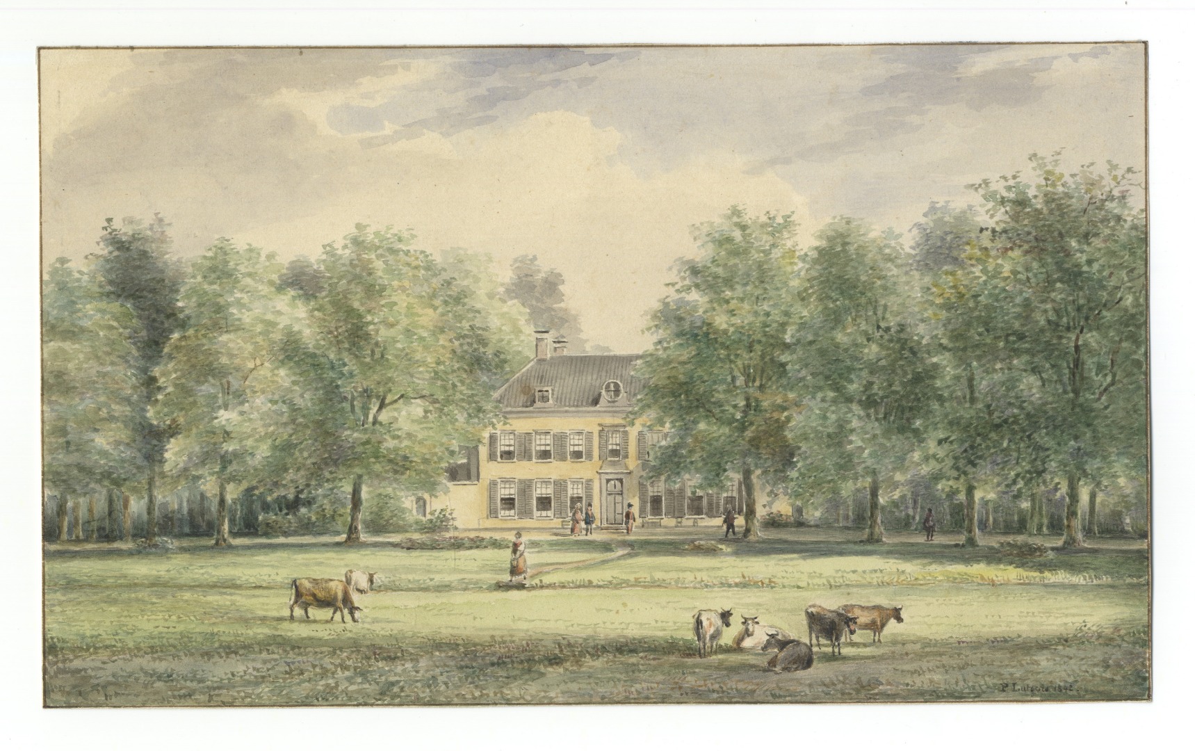 Gezicht over een weiland op de voorgevel van het huis Oostbroek bij De Bilt. Lutgers, P.J / 201716 / collectie Het Utrechts Archief - 1842 Publiek Domein 1.0